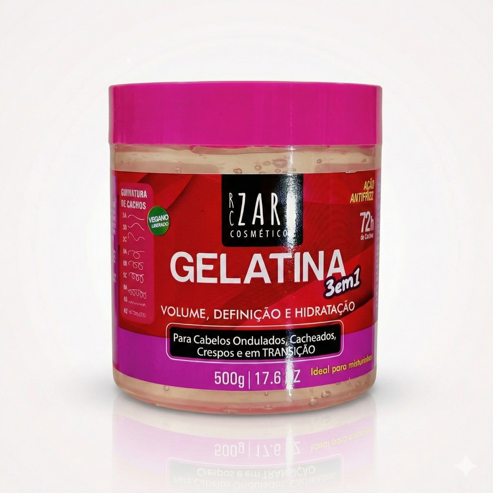 Definição duradoura com volume natural. A Gelatina 3 em 1 Zarb ajuda a firmar e proteger os fios, mantendo a hidratação e reduzindo o frizz. Ideal para crespos, ondulados e cacheados que precisam de sustentação sem rigidez. Perfeita para um styling prolongado e cheio de movimento.